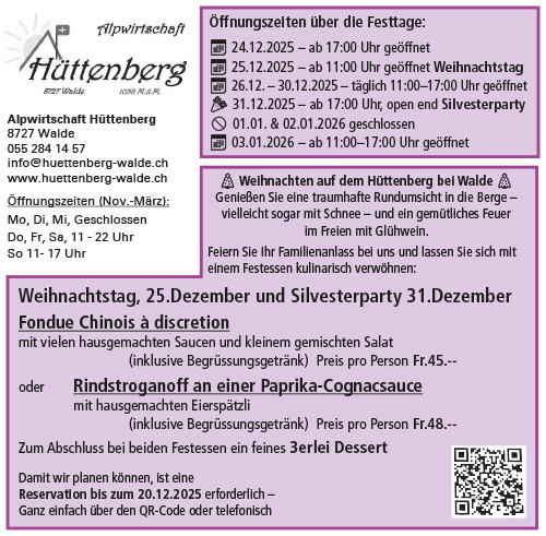 Im Winter sind wir mit Schneeschuhen oder Wanderschuhen gut erreichbar. Bei uns angekommen präsentiert sich Ihnen ein einmaliges Panorama vom vom Appenzellerland übers Toggenburg, Glarnerland bis weit in die Zentralschweiz und Linthgebiet.
